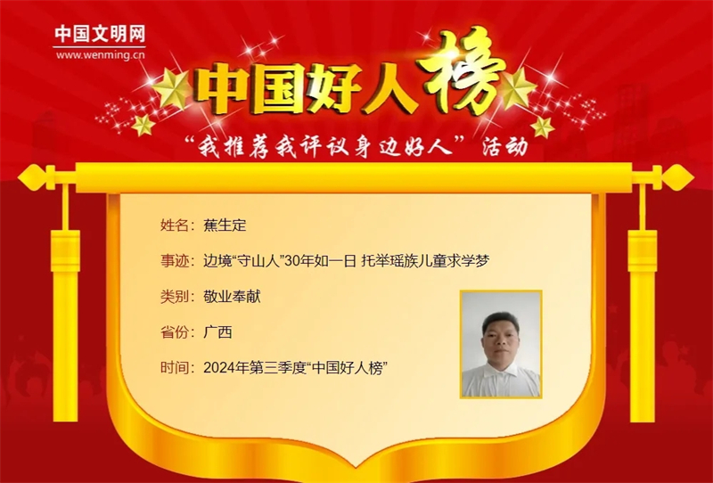 20世纪90年代,由于地处山区、环境艰苦,村民生活困难,加上部分家长教育意识淡薄,一些适龄儿童无法入学。为了让失学的孩子归校,蕉生定挨家挨户劝说家长,做通大人的思想工作,让他们明白孩子读书的重要性。