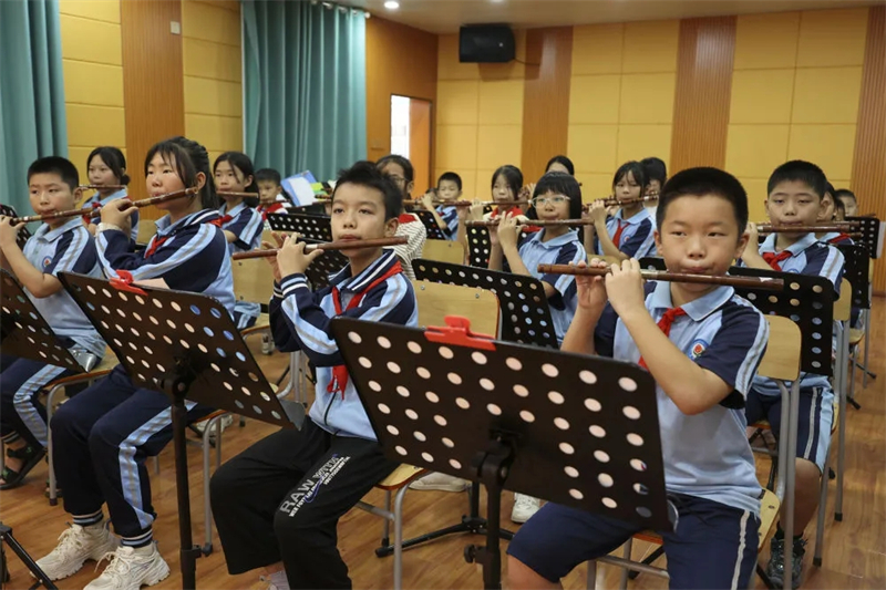 “音乐教育先要培养孩子们的兴趣,再有针对性地制定学习计划,不能一味往专业方向培养。”理顺教学供需关系后,肖惠文决定把吹奏竹笛加入教学。