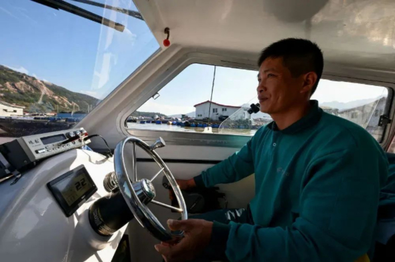石进全驾船行驶在三都澳海域。新华社记者 张铖 摄