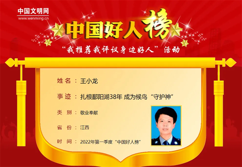 如今,越来越多人参与到爱鸟护鸟的行动中来。在鄱阳湖国家级自然保护区吴城保护管理站,像王小龙这样的“鸟痴”还有很多。候鸟越冬时,他们冒着严寒在湖区腹地巡护监测,有时甚至数月无休;到了夏天,鄱阳湖进入丰水期,站点成为孤岛,他们依然无怨无悔地守护夏候鸟。让王小龙欣慰的是,他所在的永修县吴城镇,已由过去交通闭塞的“湖中小岛”,发展成为远近闻名的候鸟小镇,每年吸引游客超100万人次,村民们吃上了生态饭,日子过得红红火火。