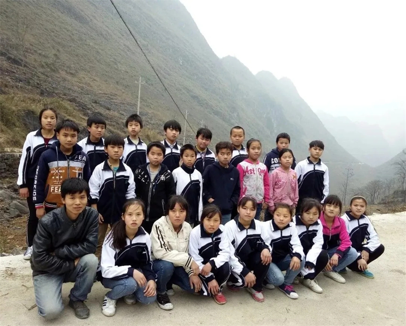 侯长亮(前排左一)与他教过的孩子合影。受访者供图