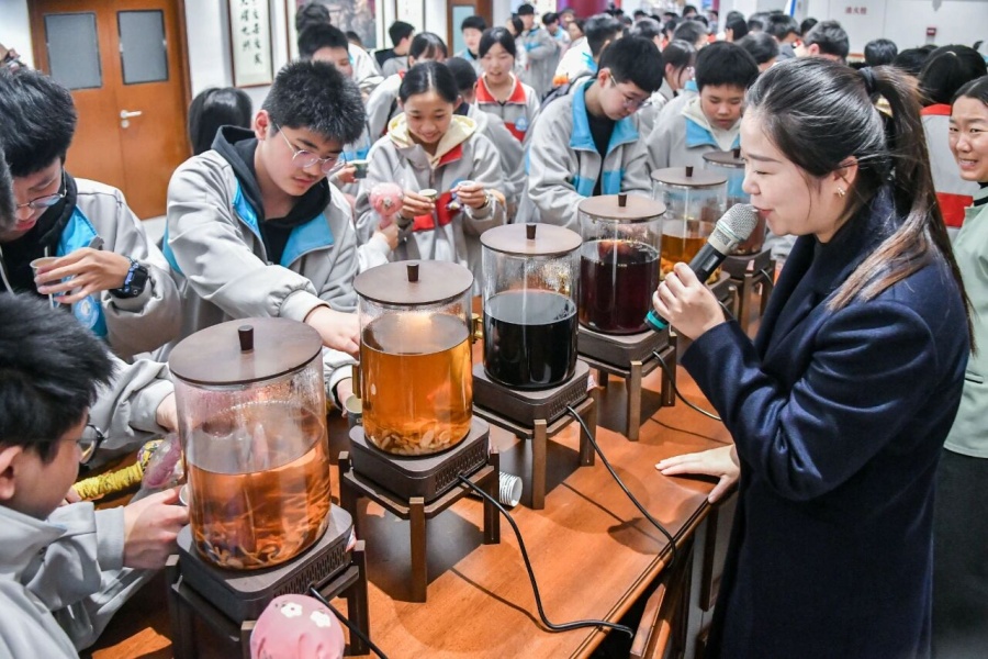 南阳市十三中北校区组织学生沉浸式体验中医药文化的独特韵味。南阳市十三中北校区供图
