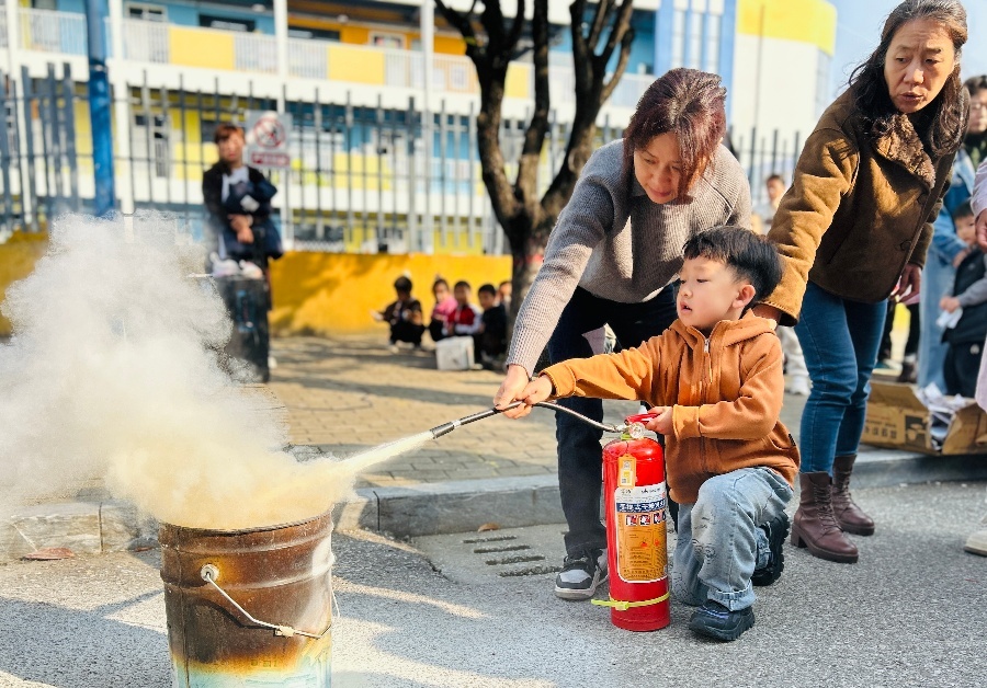 南阳市油田中心幼儿园华山分园开展消防应急演练与消防器材实操培训活动。南阳文明网供图