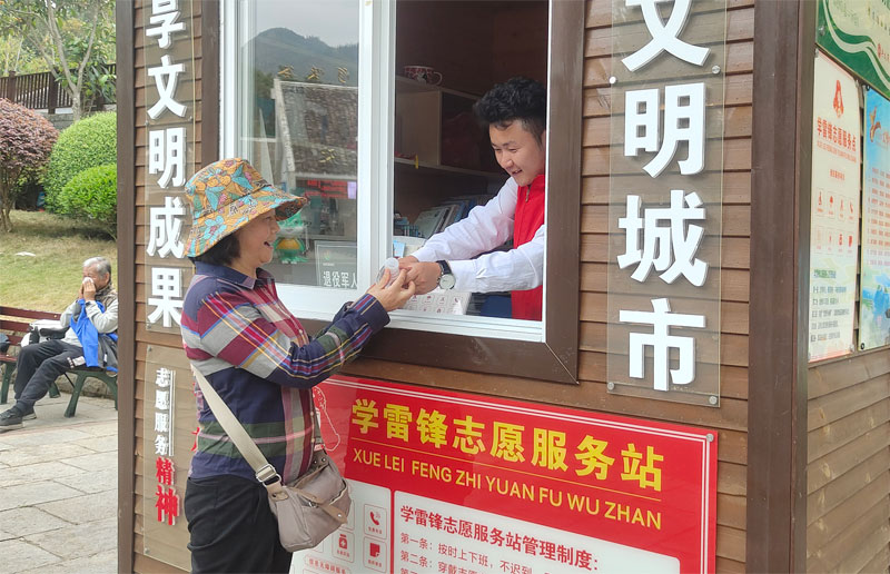 在贵州醇景区,身着红马甲的志愿者为游客提供咨询、引导服务,确保游览秩序井然。兴义市各4A级以上景区均设立了“学雷锋志愿服务站”,节假日期间,志愿者在停车场、交通枢纽等关键点位提供秩序维护、医疗救助等服务,赢得游客广泛好评。