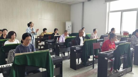 音乐爱好者正在上电子钢琴课。图片来源:肥城宣传公众号