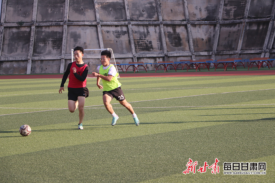 10月17日,甘谷一中操场上,同学们进行足球比赛的瞬间。记者郭林玉 摄
