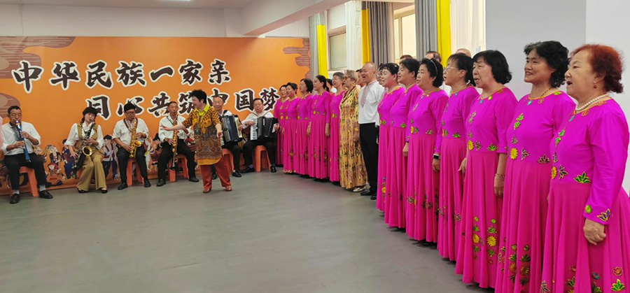 今年66岁的冯燕香性格开朗、爱说爱笑,退休前是一名列车乘务员,她喜欢唱歌,就把社区退休人员组织在一起,用歌声来表达对祖国的热爱。“我们合唱团成立已经14年了,成员中最大的82岁,最小的55岁,由6个民族组成,我们不仅为社区居民演出,还受邀去外地演出呢!”