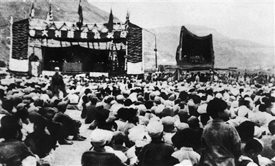 中国人民经过14年不屈不挠的浴血奋战,打败了穷凶极恶的日本军国主义侵略者,取得了中国人民抗日战争的伟大胜利。图为延安军民庆祝抗战胜利。