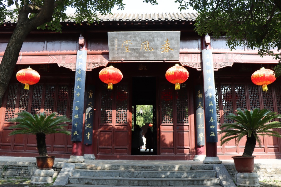 花洲书院主体为五进四院,沿中轴线,棂星门、泮池、春风堂、文会堂、万卷阁等标志性建筑次第排列。书院主讲堂以“春风”命名,取自“孔子如春风,至则万物生”的典故,也蕴含着教师讲学如春风化雨、学生听讲如沐春风的美好寓意。相传,书院创办之初,范仲淹在春风堂前亲手栽植四株桂树,以鼓励学子奋发读书,早日“折桂”。